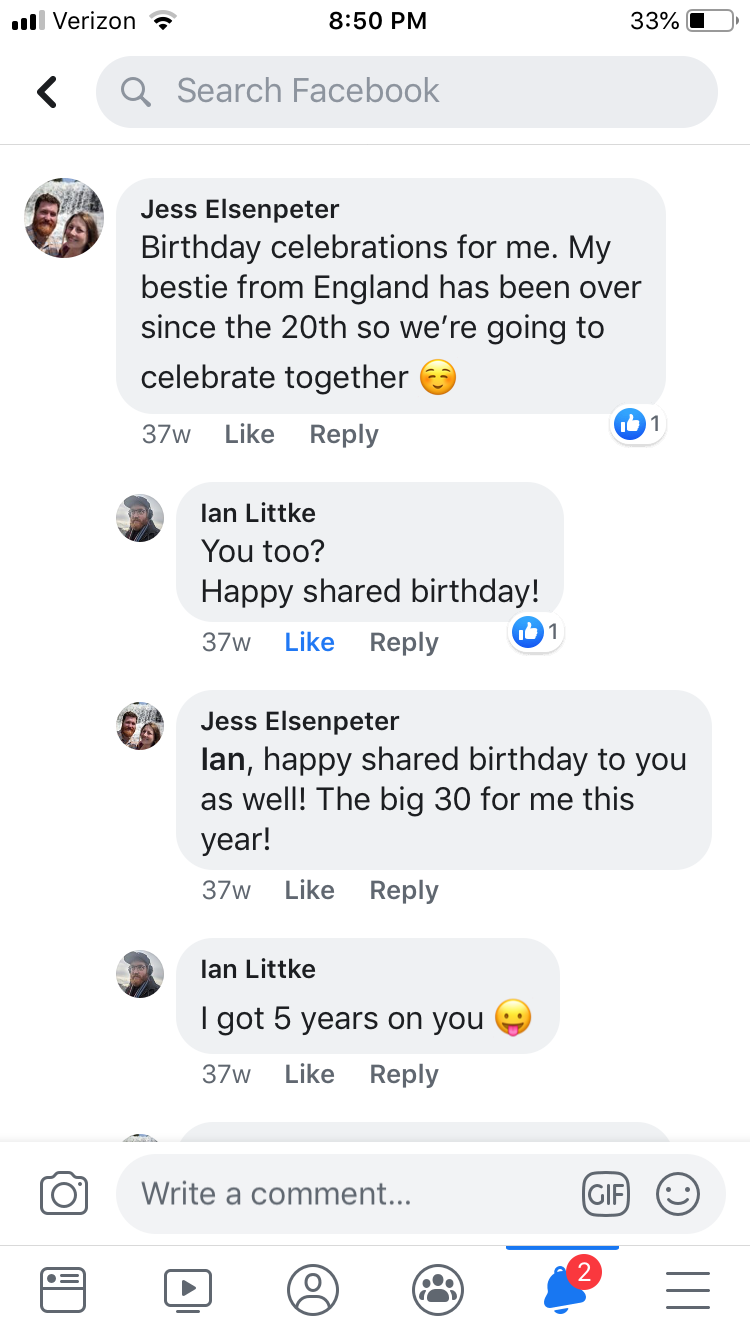 The first time we commented on anything was brief and nothing came of it. Later, we both started adding